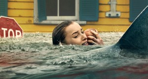sharks. Amidst a catastrophic hurricane, a coastal town